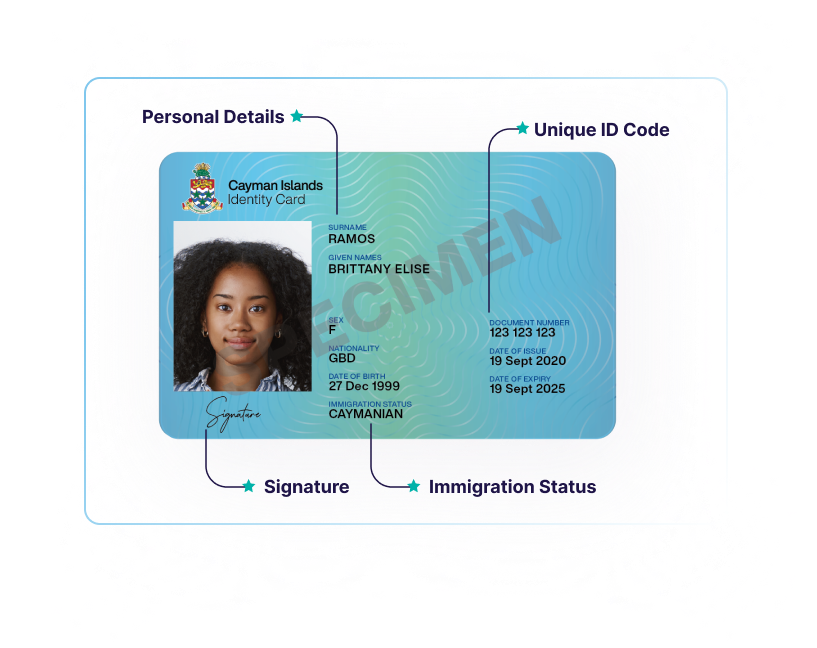 Legally recognized under the Cayman Islands Identification Card Act, ensuring widespread acceptance and trust.